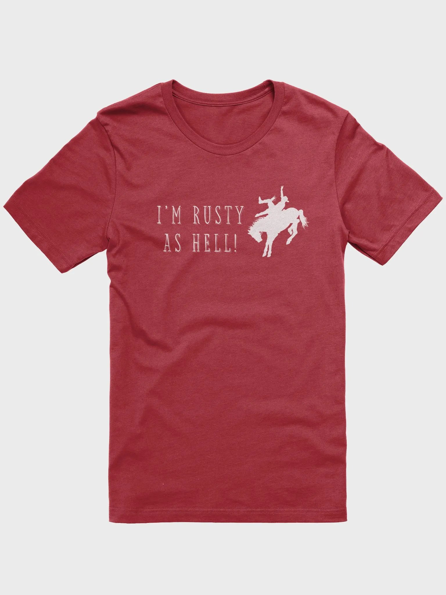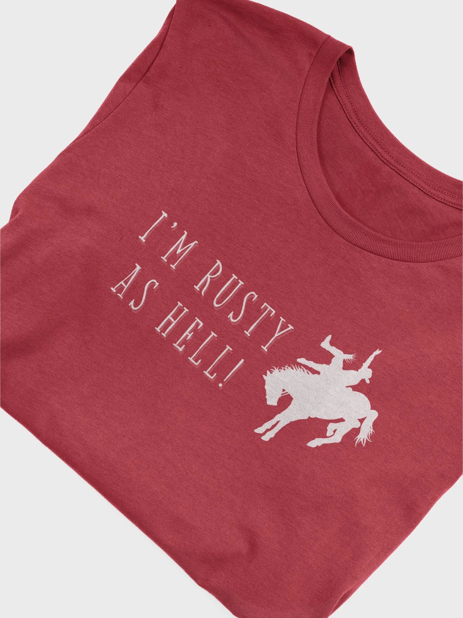 Introducing our "Rusty as Hell" T-Shirt – a rib-tickling tribute to those chaotic Red Dead Redemption horse crashes that had us all in stitches! Picture the scene: you're tearing through the wild west, feeling like the ultimate outlaw, when suddenly... crash!